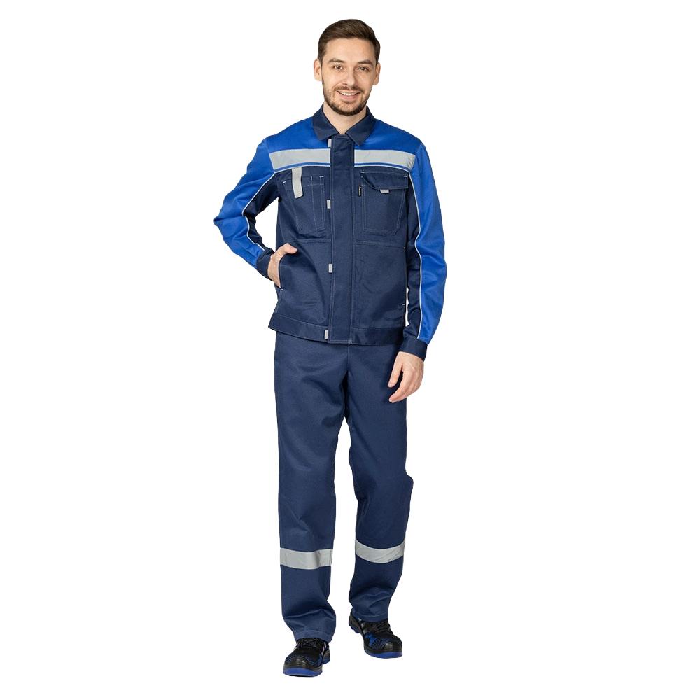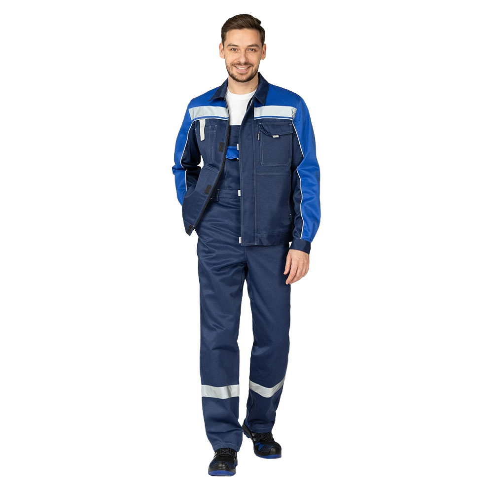 Костюм «Уни-Спец 2» (т.синий/василек) с защитой от ОПЗ, механических повреждений, проколов и порезов. Создан для специалистов, которым необходим комфорт и видимость при плохом освещении. Рабочий мужской костюм с полукомбинезоном Уни-Спец 2 СОП предназначается для эксплуатации в летнее время года. А также в закрытых теплых помещениях.