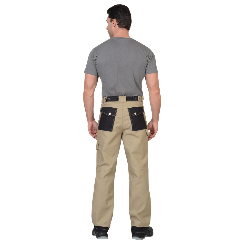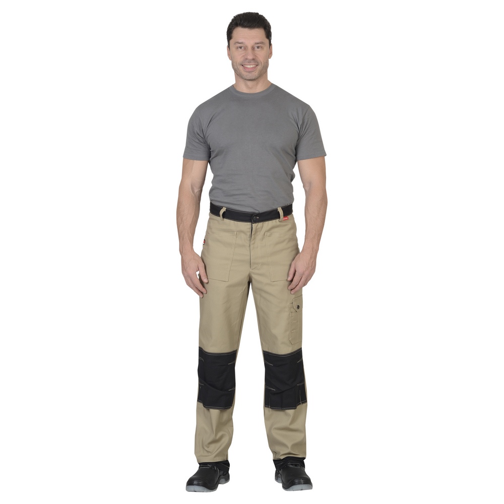 Брюки «Вест Ворк» (бежевый) с притачным поясом, застегивающимся на джинсовую пуговицу и с регулировкой ширины пояса при помощи пат и кнопок, с накладными карманами и объемными наколенниками с возможностью вставить в них объемные щитки.