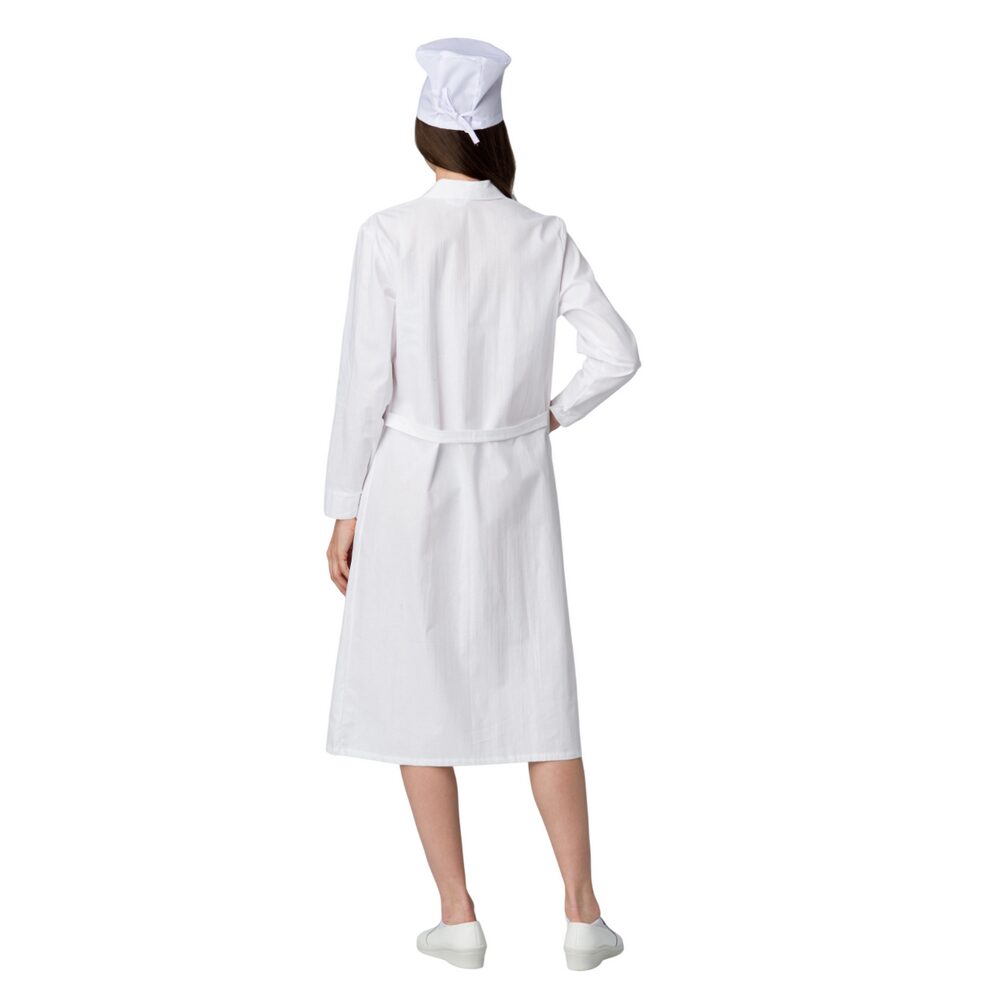 Халат: прямого силуэта, с центральной бортовой застёжкой на пуговицы. Классический отложной воротник придает опрятный внешний вид. Длинный рукав с манжетой на пуговице. Пояс по линии талии со стороны спинки позволит регулировать халат по фигуре.