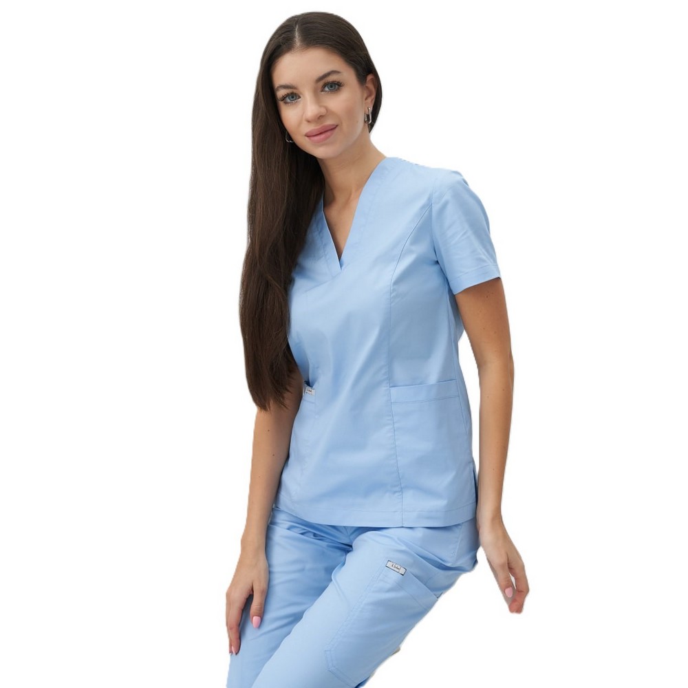 Костюм медицинский голубой является отличным выбором по соотношению качества и удобства. Он легкий, не сковывает движения.