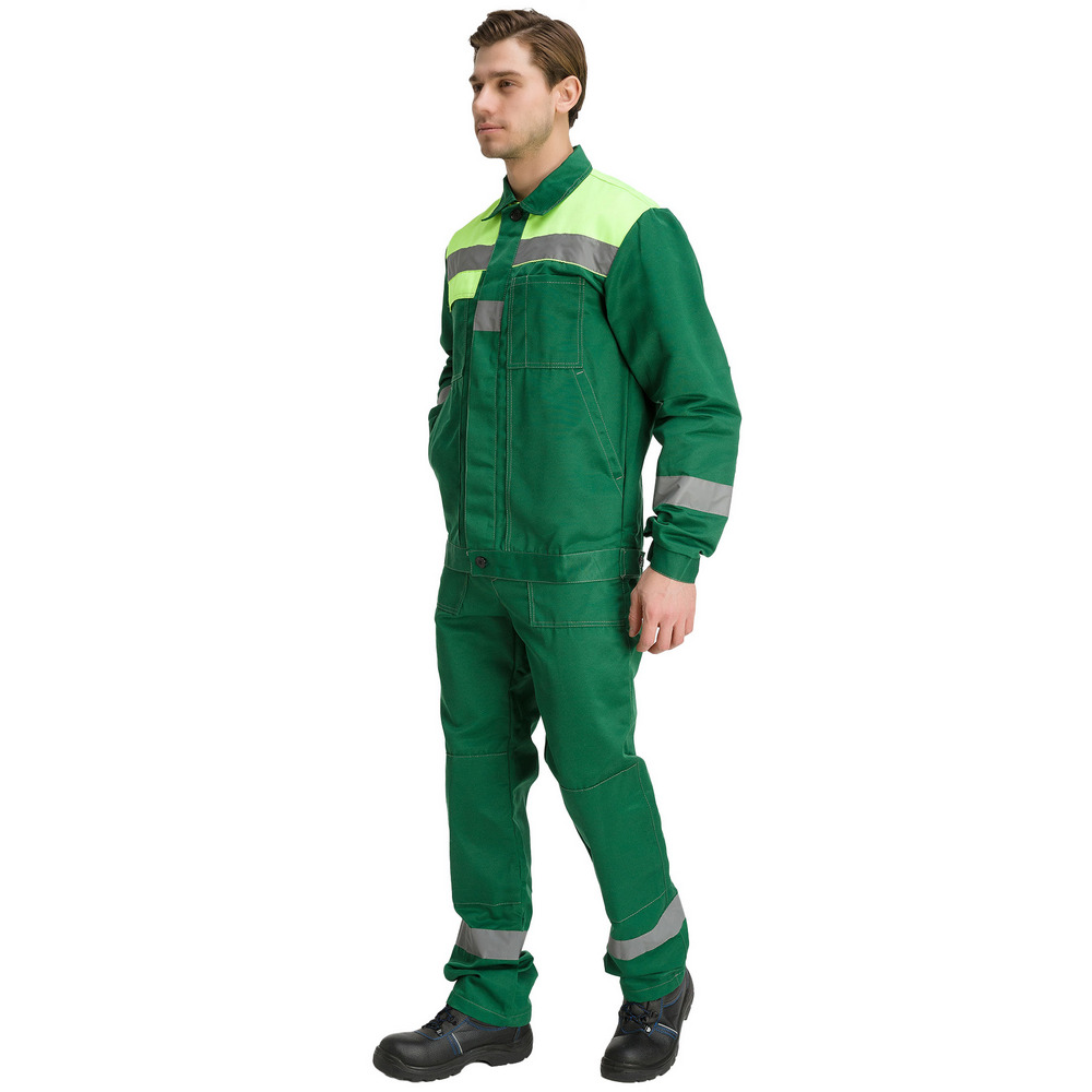 Костюм мужской "Чикаго", сочетает в себе стиль, надежность и высокую функциональность. Этот комплект состоит из элегантной куртки и брюк, выполненных в современном темно-зеленом цвете с утонченными лаймовыми акцентами, которые придают образу свежесть и оригинальность.