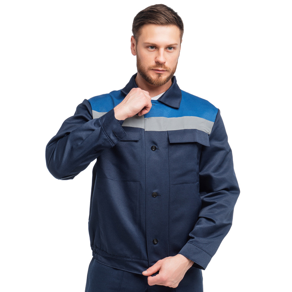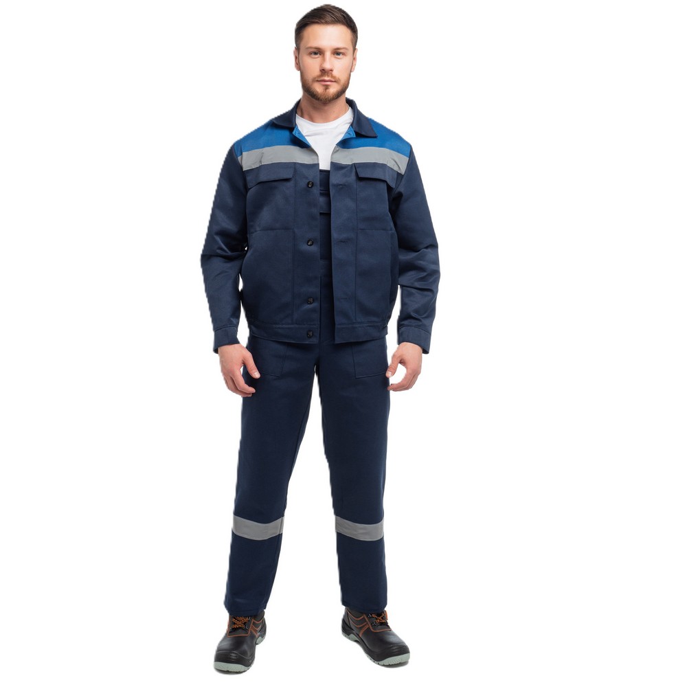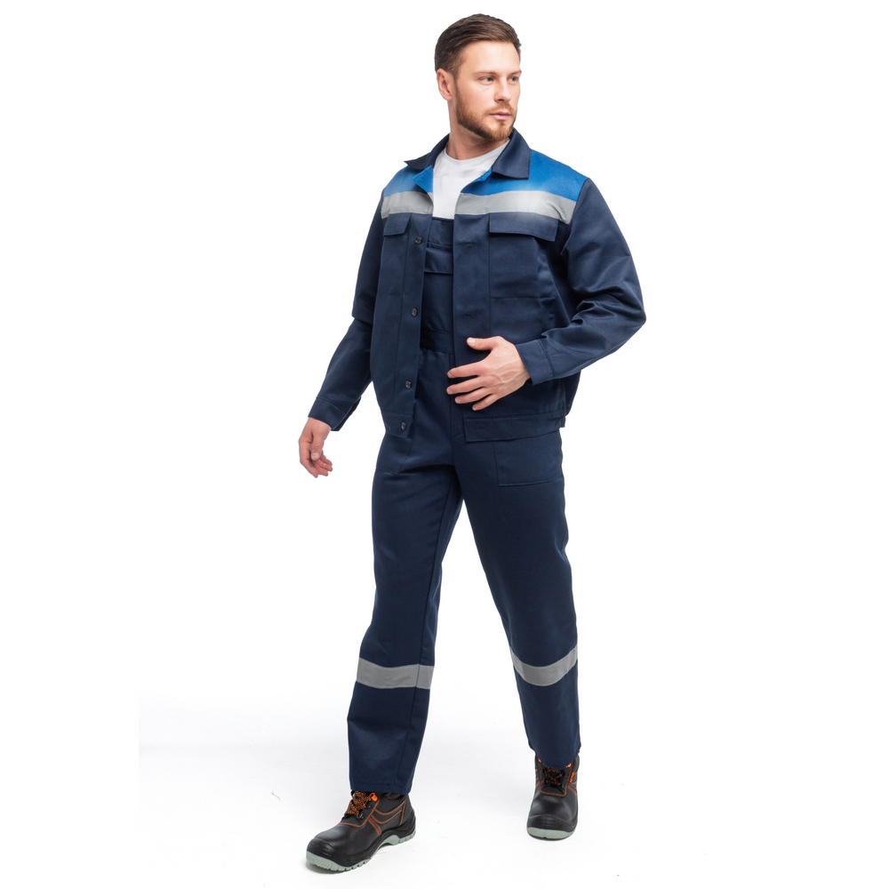 Костюме мужской «Стандарт-2» предусмотрена светоотражающая полоса шириной 50 мм, для безопасной работы сотрудника в местах с плохим освещением
