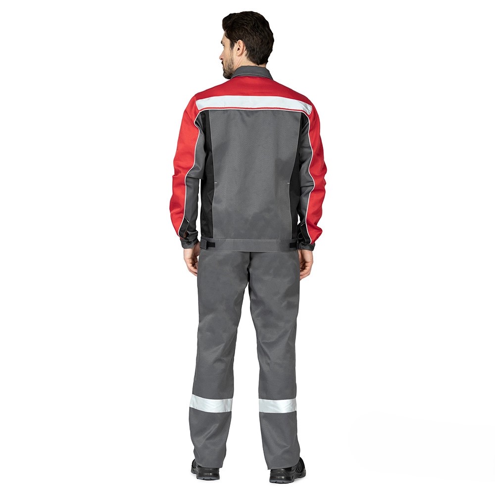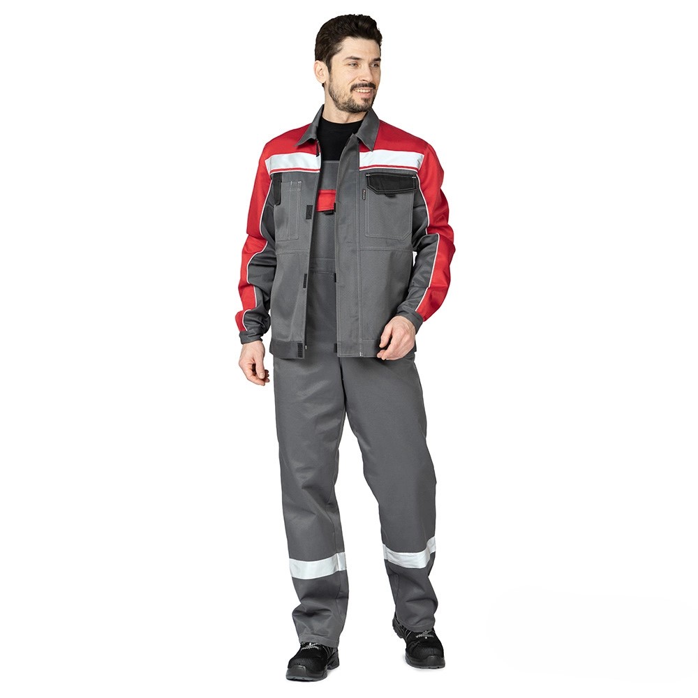 Костюм «Уни-Спец 2» (т.серый/красный) с защитой от ОПЗ, механических повреждений, проколов и порезов. Создан для специалистов, которым необходим комфорт и видимость при плохом освещении. Рабочий мужской костюм с полукомбинезоном Уни-Спец 2 СОП предназначается для эксплуатации в летнее время года. А также в закрытых теплых помещениях.