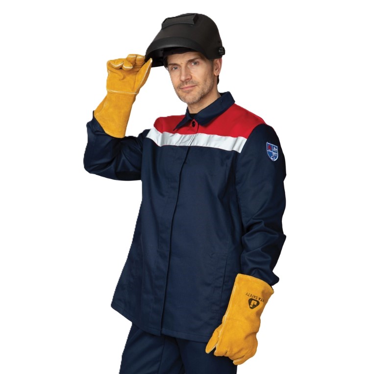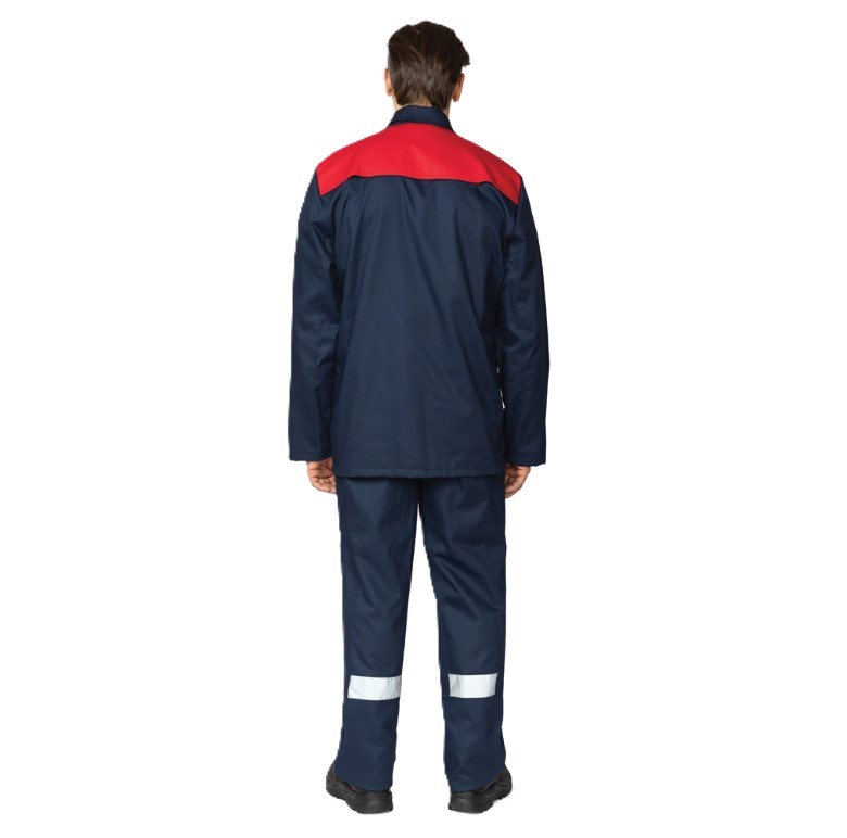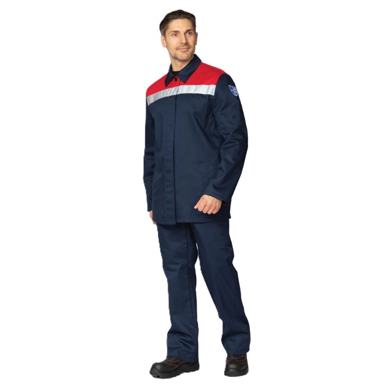 - Куртка: прямого силуэта, с центральной супатной правосторонней застёжкой на пуговицы с уловителями для пуговиц. На спине по шву притачивания кокетки два вентиляционных отверстия. Рукав втачной, под рукавами — вентиляционные отверстия. Воротник — отложной. Для обеспечения максимальной защиты по кокетке полочки проходит огнестойкая лента СОП. Конструкция рукава разрабатывается с учётом особенностей работы сварщика.