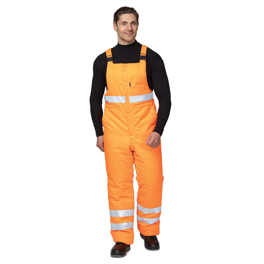 - Полукомбинезон: с притачной утеплённой подкладкой, застёгивается на двухзамковую молнию, закрытую планкой. Бретели со стороны спинки частично с открытой эластичной лентой, застёгиваются спереди на фастекс. Регулировка объёма по линии талии с помощью кулиски с эластичной лентой. Светоотражающие полосы шириной 50 мм.