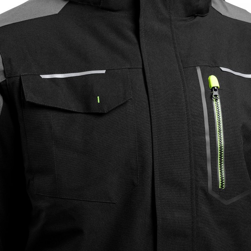 Куртка утепленная «AMOS» (черный) идеально подходит для строителей, автомехаников, работников складов, производств и дорожных рабочих. Всех, кто работает в условиях повышенной влажности, загрязнений или контакта с маслами. Данная куртка современная и эргономичная, обеспечивающая свободу движений.
