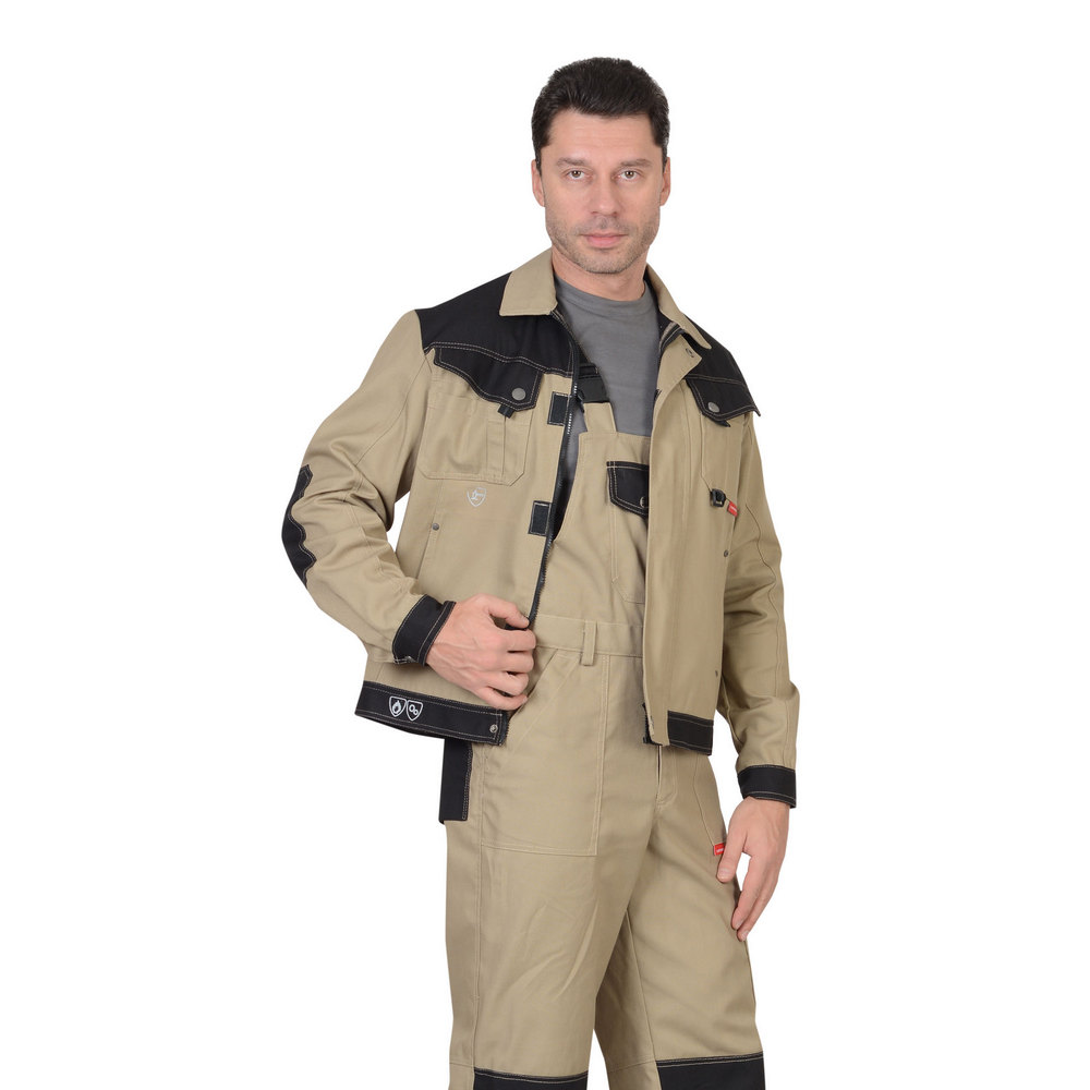 Куртка «Вест Ворк» укороченная (бежевый) комплектуется с полукомбинезоном из данной серии спецодежды.