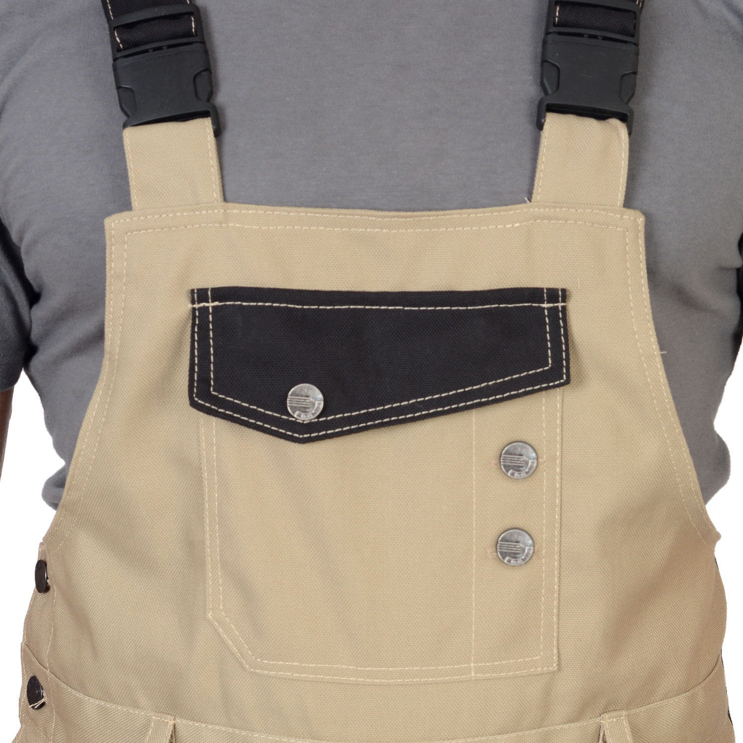 Полукомбинезон «Вест Ворк» (бежевый) оснащается застежкой гульфика на тесьму — «молния», что обеспечивает удобство и надежность при использовании. Застежка в боковом шве на 3 джинсовые пуговицы добавляет дополнительный уровень защиты от внешних факторов. Фигурный карман и клапан на нагруднике, застегивающийся на кнопку с логотипом «Сириус», позволяют хранить мелкие предметы в удобном и безопасном месте.