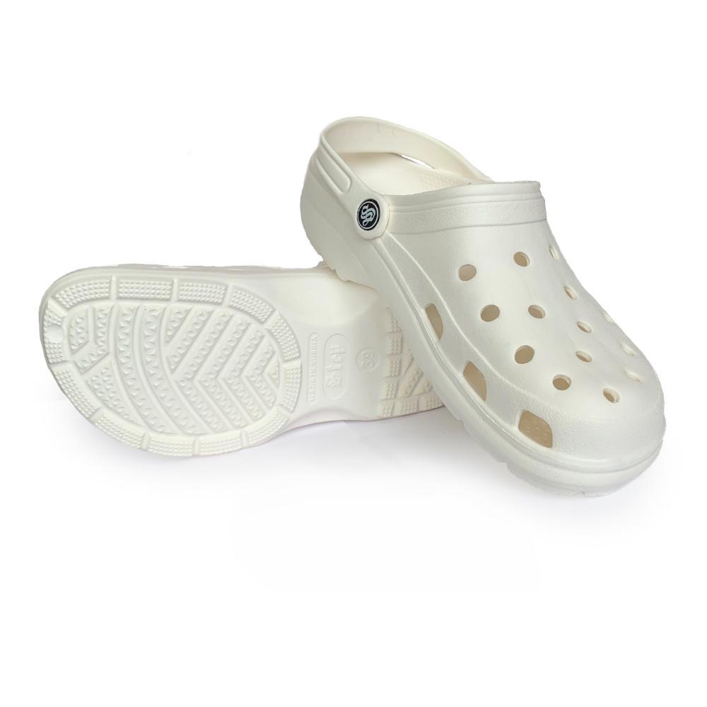 Удобные и мягкие сабо подойдут как для работников медицинских учреждений, так и для домашнего использования. Благодаря материалу ЭВА, из которого они изготовлены, отличающегося своей легкостью, сабо будут для вас комфортными при длительном ношении. Перфорация придаст дополнительной вентиляции. Присутствует подпальцевый валик, препятствующий смещению стопы при ходьбе.