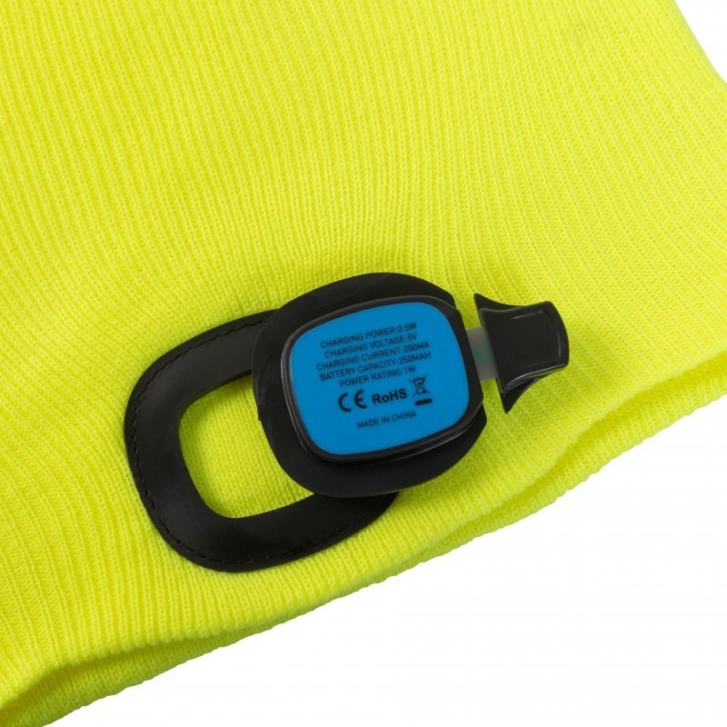 Шапка «OTTO» (желтый) оснащается налобным фонарем мощностью 180 люмен с возможностью регулировки интенсивности на трех уровнях. Фонарь можно заряжать через USB-разъем (фонарь можно легко вынуть из шапки и зарядить через USB-порт, например, на компьютере). Идеально подходит для работы зимой, особенно в местах с низким освещением или ночью.